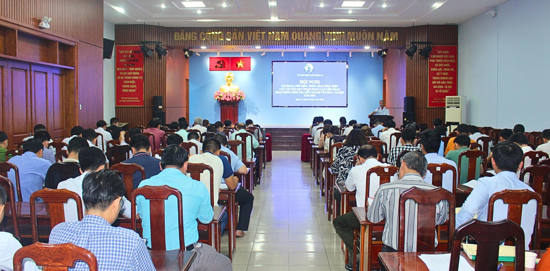 Tại hội nghị, đồng chí Nguyễn Thành Loan Mười - Phó Chánh Thanh tra Sở Văn hóa và Thể thao TPHCM, báo cáo viên hội nghị đã trình bày các văn bản quy phạm pháp luật liên quan đến lĩnh vực thể thao và các văn bản quy phạm pháp luật liên quan đến hoạt động kiểm tra liên ngành Văn hóa - Xã hội gồm: Luật Ban hành văn bản quy phạm pháp luật (Luật số 80/2015/QH13, ngày 26/6/2015 và Luật số 63/2020/QH14, ngày 18/6/2020 sửa đổi bổ sung một số điều của Luật Ban hành văn bản quy phạm pháp luật); Luật số 67/2020/QH14 ngày 13/11/2020 của Quốc hội ban hành Luật sửa đổi bổ sung một số điều của Luật Xử lý vi phạm hành chính; tài liệu phổ biến pháp luật liên quan hoạt dộng kiểm tra liên ngành Văn hóa - Xã hội.