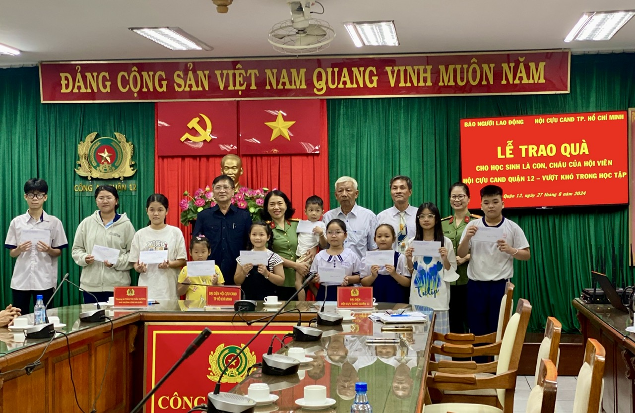 Ngày 28/8/2024, Hội Cựu CAND Quận 12 phối hợp báo Người Lao động tổ chức trao tặng quà cho con, cháu của Hội viên thuộc Hội Cựu CAND Quận 12 có hoàn cảnh khó khăn vượt khó trong học tập