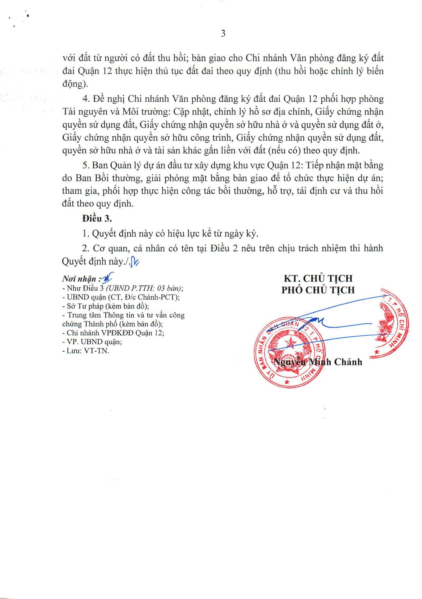 Quyết định thu hồi đất để thực hiện dự án Nâng cấp, mở rộng đường Tân Thới Hiệp 21, Quận 12 của ông (bà) Phan Văn Thư (20/01/2025)