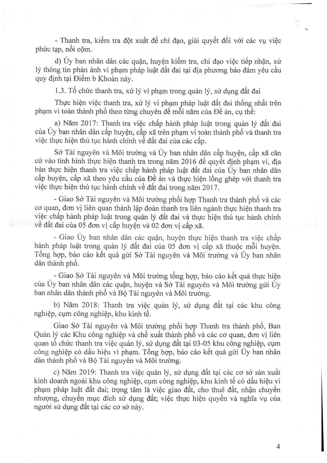 Kế hoạch thực hiện Đề án tăng cường xử lý vi phạm về quản lý sử dụng đất giai đoạn đến năm 2020 trên địa bàn Thành phố Hồ Chí Minh