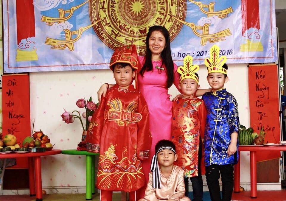 Cô Trần Thị Hồng Phượng cùng học trò của mình