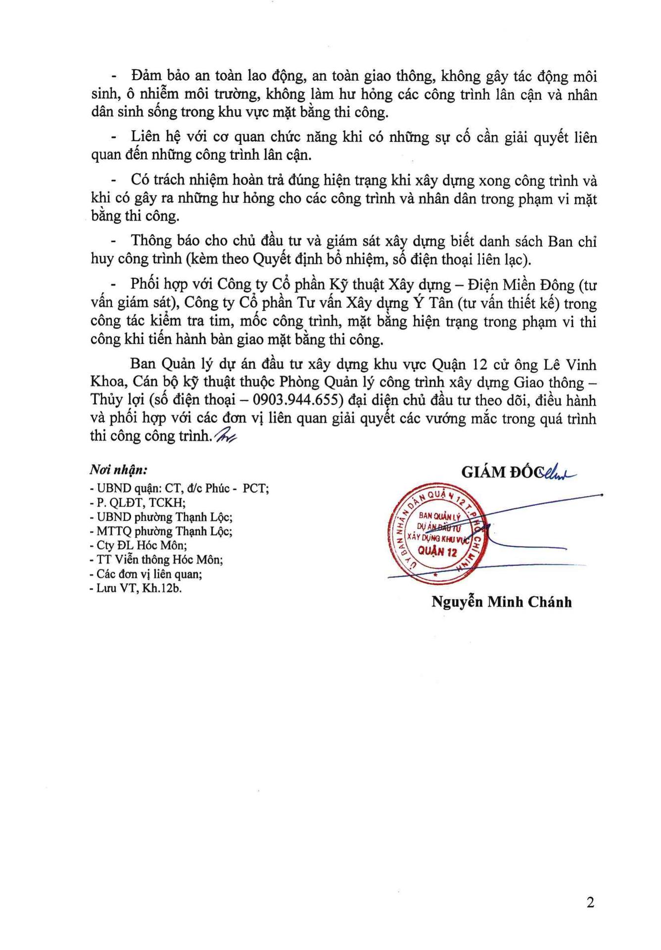 Thông báo khởi công gói thầu Xây lắp công trình Bê tông hóa bờ bao Ông Sỏi-Khu phố 1, phường Thạnh Xuân