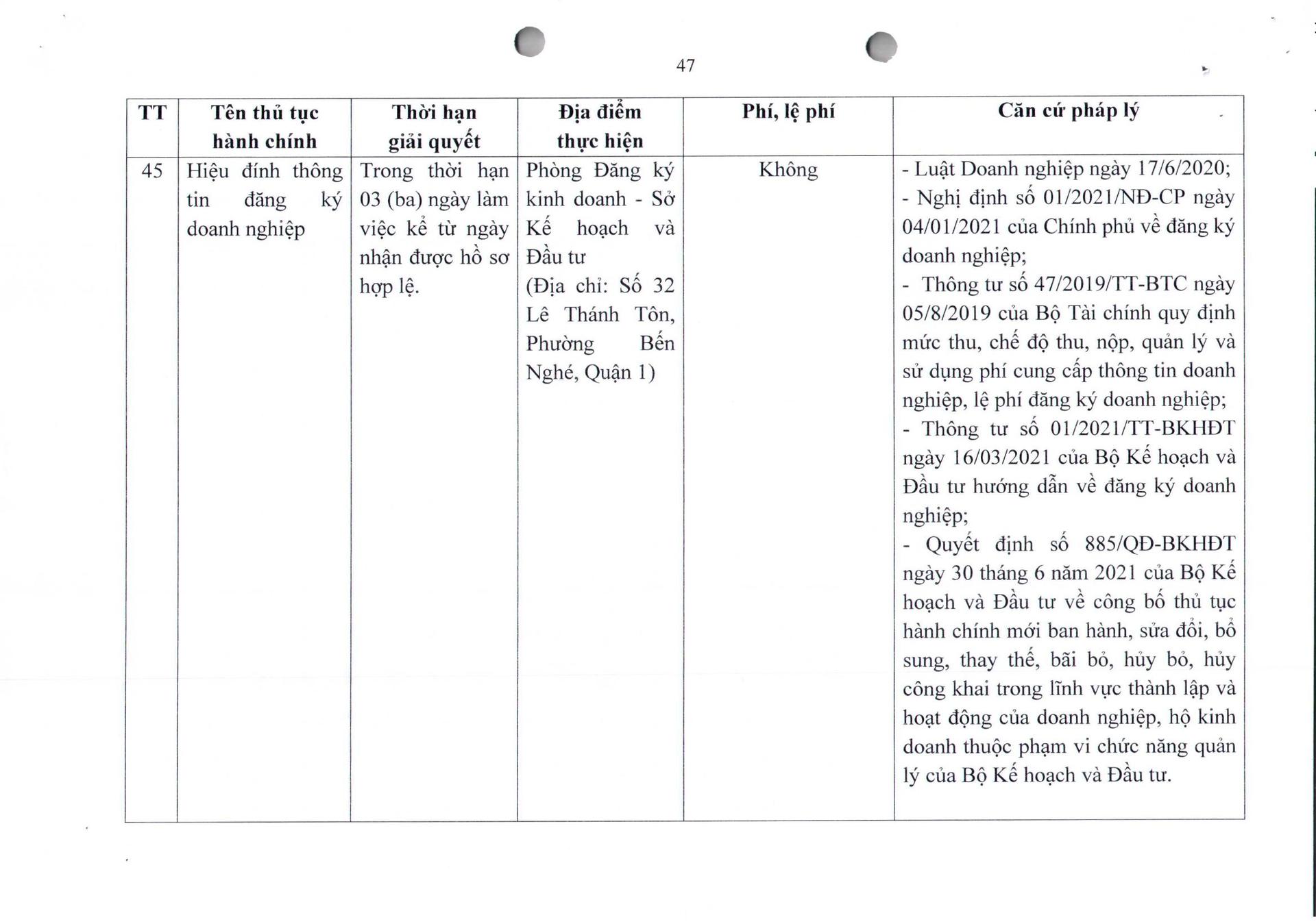Quyết định số 3503/QĐ-UBND ngày 08/10/2021 của UBND TPHCM về việc công bố danh mục thủ tục hành chính lĩnh vực thành lập và hoạt động của doanh nghiệp, hộ kinh doanh thuộc phạm vi chức năng quản lý của Sở Kế hoạch và Đầu tư